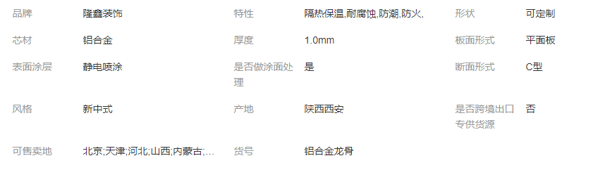 鋁合金龍骨是在鐵皮烤漆龍骨上的改進(jìn)。因?yàn)殇X經(jīng)過(guò)氧化處理之后不會(huì)生銹和脫色,原來(lái)的鐵皮烤漆龍骨時(shí)間長(zhǎng)了會(huì)因?yàn)檠趸鴮?dǎo)致生銹,發(fā)黃,掉漆。特點(diǎn):鋁合金龍骨具有強(qiáng)度高,質(zhì)量較輕,個(gè)性化性能強(qiáng),裝飾性能好,易加工,安裝便捷。